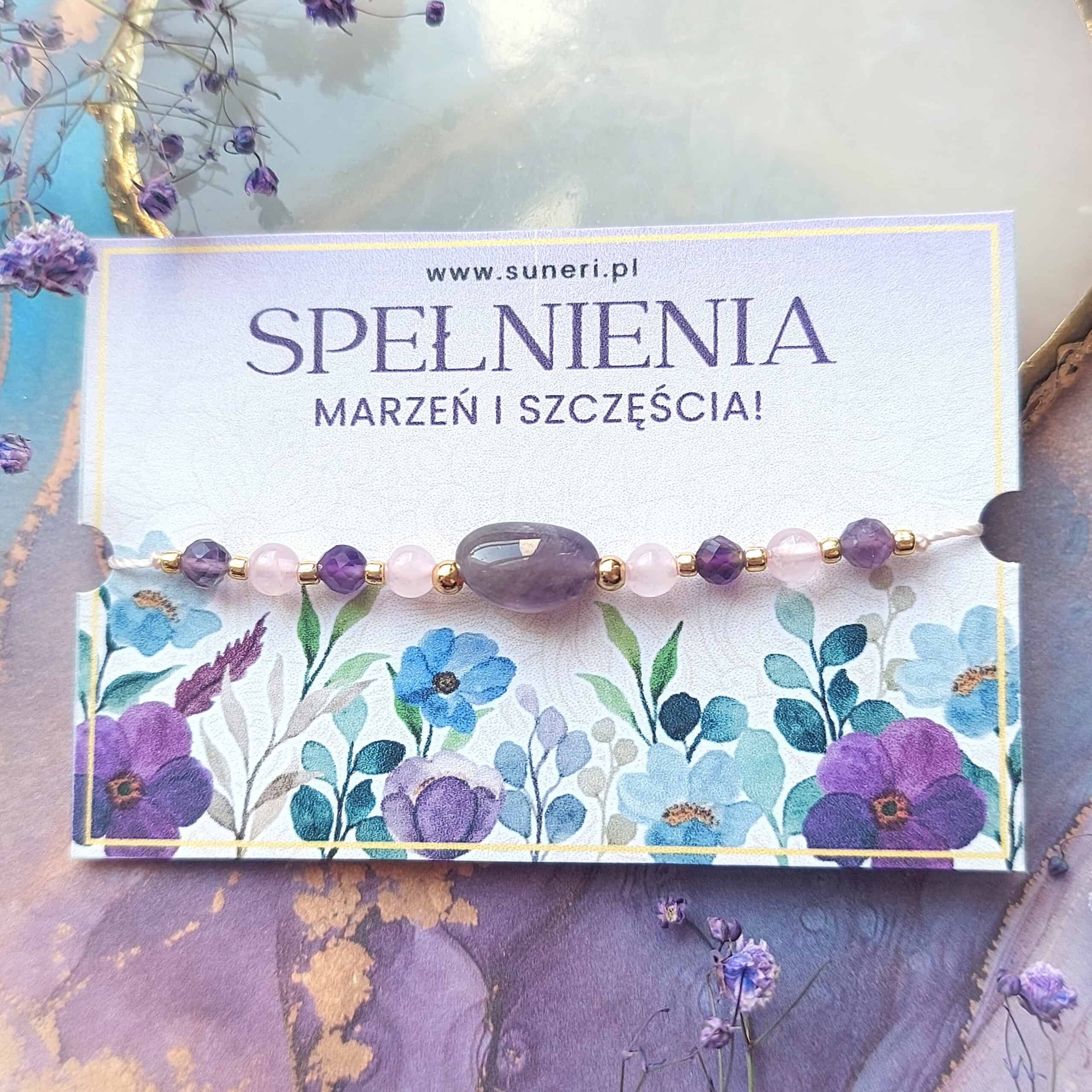 ✦ Ametyst i kwarc różowy ✦ bransoletka na sznurku