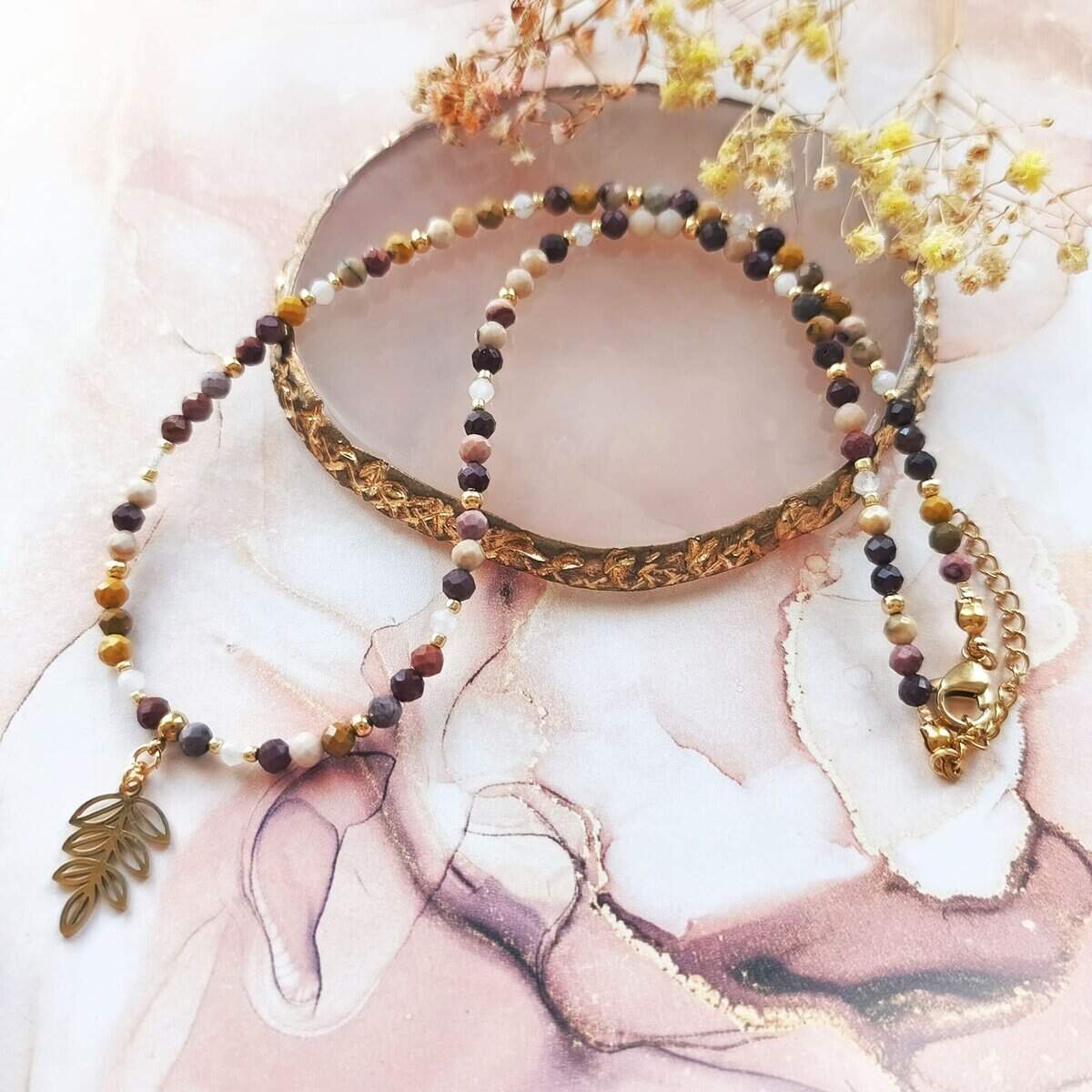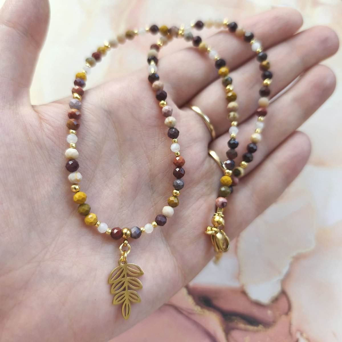 ✦ Z koralików z jaspisu mokait i kamienia księżycowego, pochodzących ze sprawdzonego źródła.